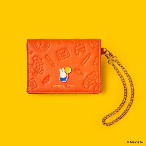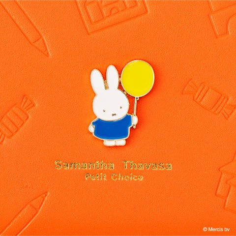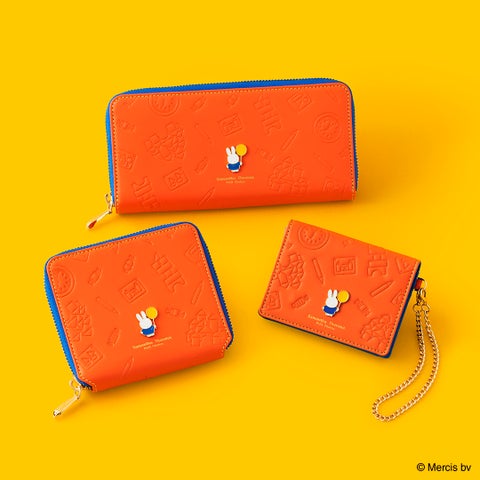 ブルーナさんの絵本で使用されるブルーナカラーを基調とした小物シリーズです。積み木や鉛筆、キャンディーなどをモチーフにした型押しがデザインのポイントとなっています。フロント中央には、イエローの風船を持ったミッフィーのイラスト金具が可愛らしい印象を与えます。