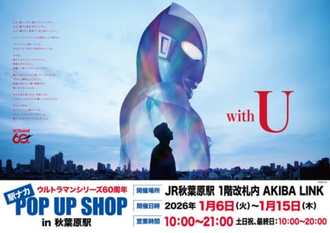 JR秋葉原駅にて「ウルトラマンシリーズ60周年 駅ナカ POP UP SHOP」が2026年1月6日より開催されます。多様な限定グッズや先行販売品が登場する、ファン必見の期間限定イベントです。