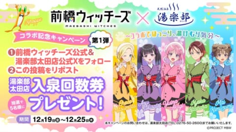 『前橋ウィッチーズ』と天然温泉 湯楽部のコラボレーションに関する詳細情報や最新情報は、各公式サイトで確認できます。
