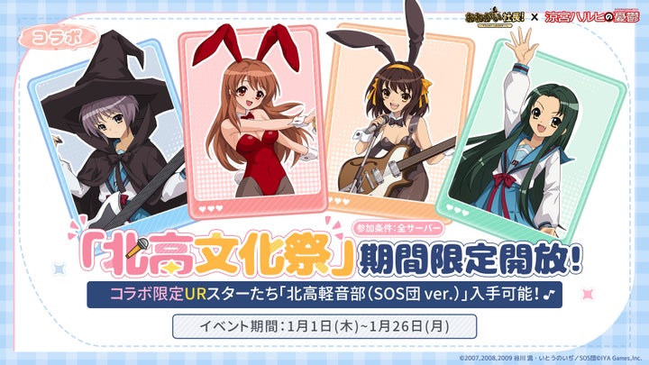 IYAGAMESは、スマートフォン向け会社経営シミュレーションゲーム『おねがい社長!』とTVアニメ『涼宮ハルヒの憂鬱』とのコラボレーションを2025年12月27日より実施します。