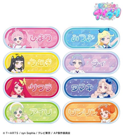 青空 ひまり、星川 みつき、鈴風 つむぎ、真実夜 チィ、一条寺 サクラ、二階堂 タマキ、三ツ葉 アイリ、四之宮 リンリンのイラストをアクリルネームプレートに仕上げました。
