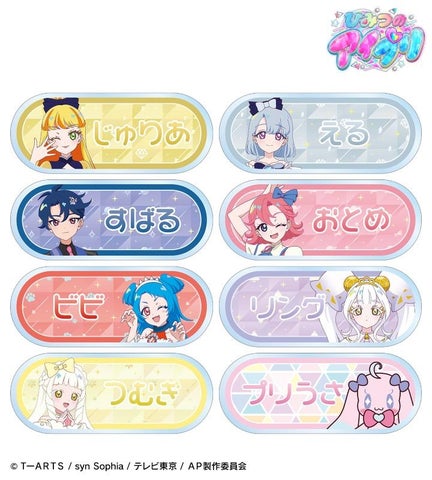 五十嵐 じゅりあ、六堂 える、七浦 すばる、七浦 おとめ、八王子 ビビ、リング・クローバー、つむぎ(プリンセスver.)、プリうさのイラストをアクリルネームプレートに仕上げました。