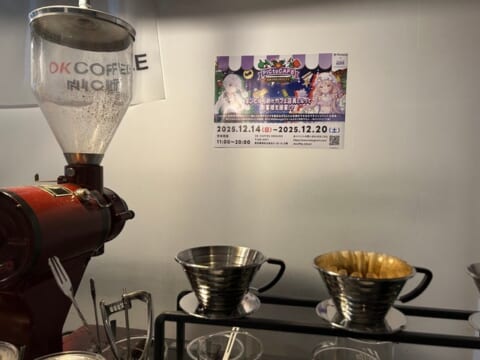 コラボカフェの会場となったOK COFFEE MEGUROでは、紡ネンと夢眠ゆらめの世界観を表現した装飾が施されました。等身大パネルやグッズが展示され、ファンはパネルと一緒に記念撮影を楽しんだり、日替わりのメッセージボードに目を向けたりしました。