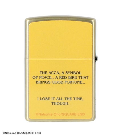 本商品は、主人公ジーン・オータスが作中で愛用するアッカのライターをZippoに落とし込み、細部にわたるデザインのこだわりが光ります。裏面には最終話ラストのセリフ「平和のシンボルアッカは幸せを呼ぶ赤い鳥なんだから よくなくすけどね」の英訳を掲載し、印象的な仕上がりです。真鍮色の本体に古美加工を施したヴィンテージ感溢れる質感は、作品の世界観を忠実に再現し、所有する喜びを提供します。