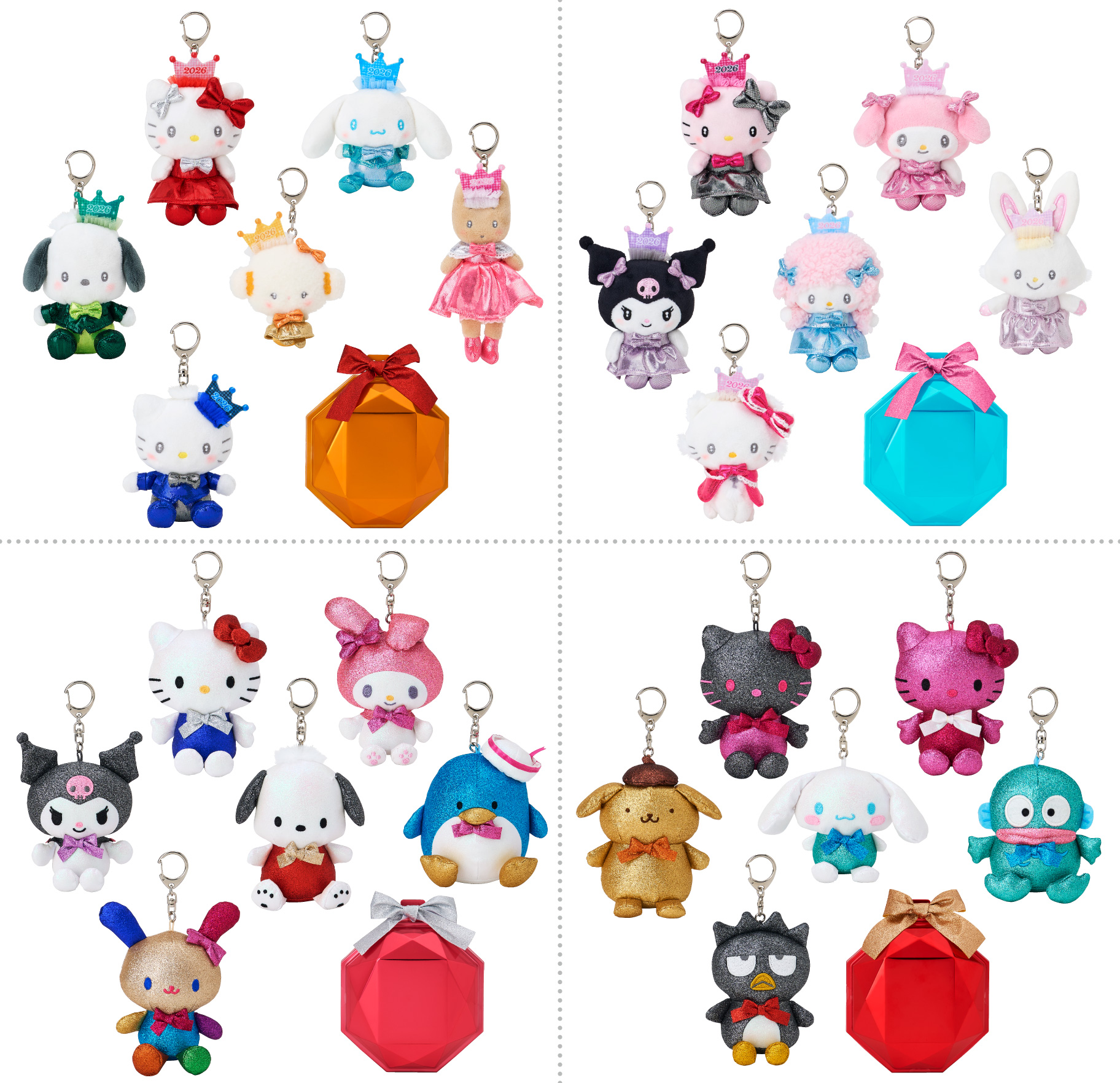 - シークレットマスコットホルダー キラキラB(全6種): ハローキティ(2種)、ポムポムプリン、シナモロール、ハンギョドン、バッドばつ丸