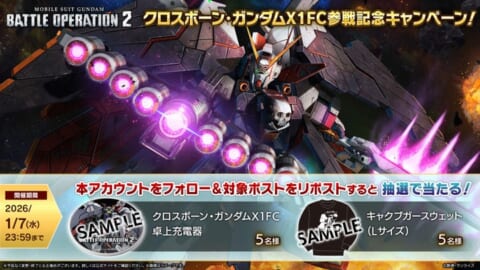『バトオペ2』への「クロスボーン・ガンダムX1FC」実装を記念して、公式Xでフォロー&リポストキャンペーンを実施中です。