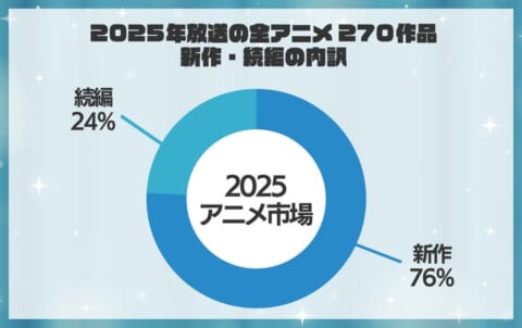 株式会社ブシロードのグループ分析組織であるアニメデータインサイトラボが、2025年に放送された全270作品(新作204作品、続編66作品)を対象に調査を実施しました。