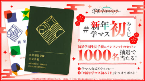 「学園アイドルマスター」は、2026年1月1日12:00より「新年 学マス初みくじプレゼントキャンペーン」を開催します。X (旧Twitter) で公式アカウントをフォローし、ハッシュタグ「#新年学マス初みくじ」を付けてポストすると、抽選で1,000名様に「初星学園生徒手帳&初星学園パンフレット」をプレゼント。本キャンペーンの内容や参加方法を詳しくご紹介しますので、ぜひご参考にしてください。
