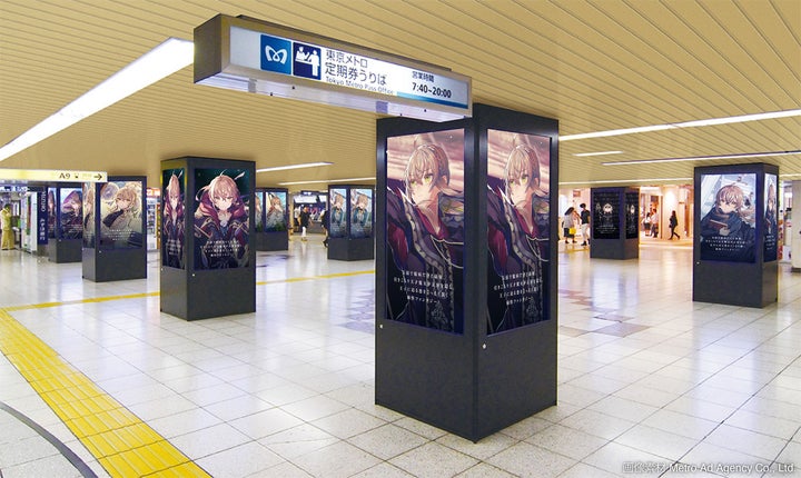 東京メトロ新宿駅東口改札外 定期券うりば前にてサイネージジャックを展開しています。9本の柱サイネージごとに異なるキャラクターが登場するスペシャル映像です。