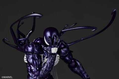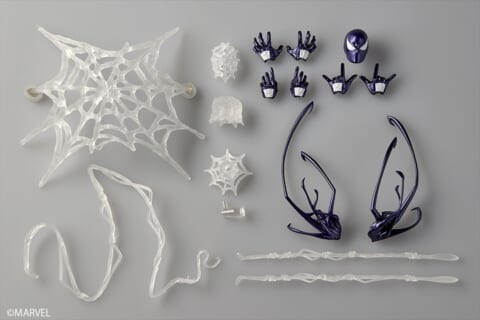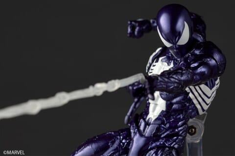 本フィギュアは、シンビオート・スーツ姿のスパイダーマンを全身パープルカラーに一新しています。アメコミのイラスト表現をイメージした、スタイリッシュかつ不穏なカラーリングが、従来の造形に異なる魅力を加えています。