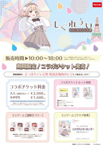 本イベントでは、さっぽろテレビ塔の館内に隠されたイラストパネルを探す謎解きラリーと、展望台への昇れるチケットがセットになった「コラボチケットセット」を販売します。コラボチケットには本イベント限定の特典クリアファイルが付属します。