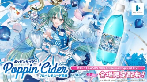 プラスワン株式会社は、ローソン創業50周年記念「初音ミク LAWSON 50th Anniversary Special LIVE」へ協賛し、会場にて限定ラベルの「ポッピンサイダー ブルーレモネード風味」を配布します。ライブに訪れる方々に特別な体験をお届けする企画です。