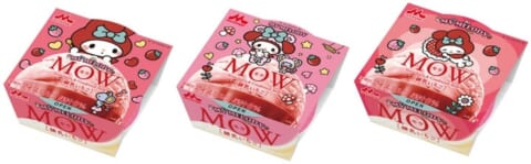 「MOW練乳いちご」のパッケージには、昨年50周年を迎え、1月18日に誕生日を迎える人気キャラクター「マイメロディ」が登場します。マイメロディがデザインされたパッケージも全3種類展開され、いちご果汁8%使用したいちごアイスに森永乳業の練乳「森永ミルク 加糖れん乳」を組み合わせた、練乳がけいちごのような甘酸っぱい味わいをご堪能いただけます。