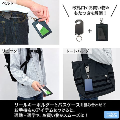 通勤・通学に最適な、便利なナスカン付きワンポケットタイプパスケースです。カードを入れるポケットの窓は個人情報が隠れる特殊形状を採用しています(カードの種類によっては対応していないものもございます)。定期券以外にもセキュリティカードや電子マネーカードなどにおすすめです。美麗な高精細フルカラープリントが施された高級感のある合皮製で、別売りのコスパのリールキーホルダーシリーズと合わせるとさらに便利に使用できます。