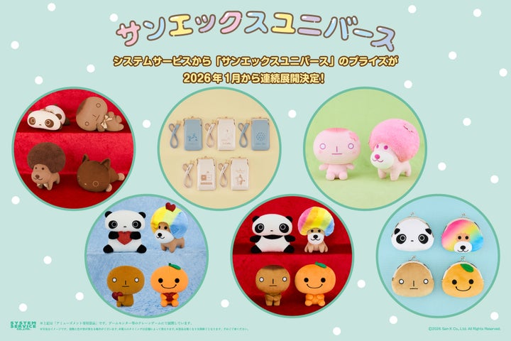 システムサービスは、「サンエックスユニバース」のプライズ商品を2026年1月より順次、全国のアミューズメント施設にて展開すると発表しました。ぬいぐるみやポーチなど、キャラクターの魅力が詰まったアイテムが多数登場します。