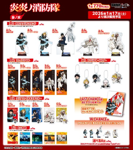 TVアニメ『炎炎ノ消防隊 参ノ章』のDMMくじが2026年1月17日より順次発売されます。ここでしか手に入らない限定グッズの多彩なラインナップに注目です。