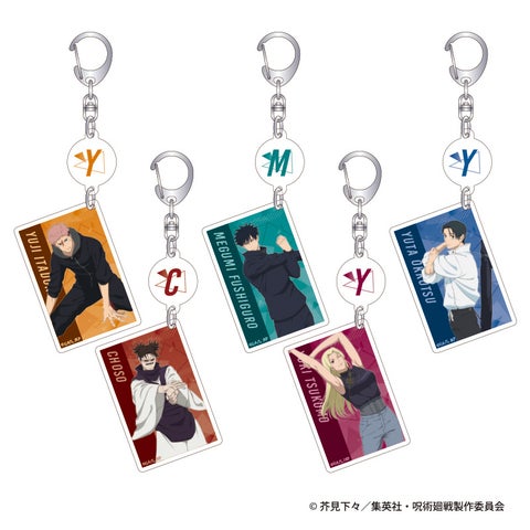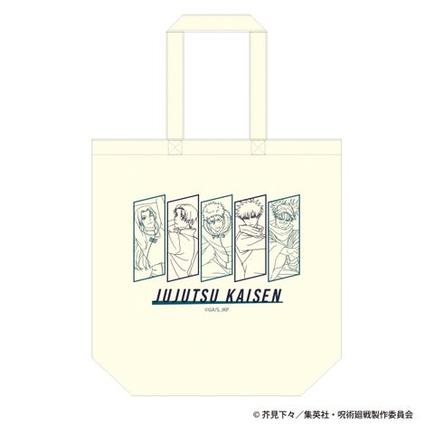 新商品には、ストレッチをしている虎杖悠仁、伏黒恵、乙骨憂太、脹相、九十九由基の新規描きおろしビジュアルが使用されています。「アクリルスタンド」や「グリッターキャラバッジコレクション」のほか、普段使いもできる「トートバッグ」などがラインナップしています。