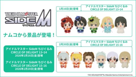 株式会社バンダイナムコエクスペリエンスは、『アイドルマスター SideM』のちびぐるみ景品を、2026年1月16日(金)より全国のアミューズメント施設およびオンラインクレーン「ナムコオンラインクレーン」(ナムクレ)にて展開します。