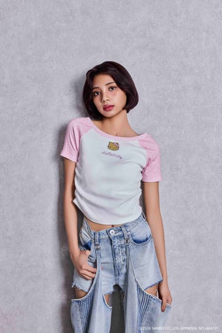 今回のコラボレーションでは、GYDAが持つヘルシーな魅力とハローキティの愛らしいチャーミングさを融合させたアイテムを展開します。日焼けしたデザインのハローキティをあしらったキュートなグラフィックが特徴です。また、袖部分にはハローキティのオリジナルレオパード柄が施され、細部にまでこだわったデザインに注目が集まります。