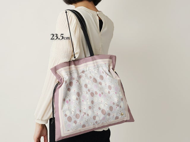 また、ゆとりのある長めの持ち手により、肩掛けもスムーズに行えます。荷物が多い日でも快適に持ち歩けるバランスの良さが特徴です。バッグの正面右下にはゴールドの「ニョロニョロ」があしらわれ、上品なアクセントを加えます。