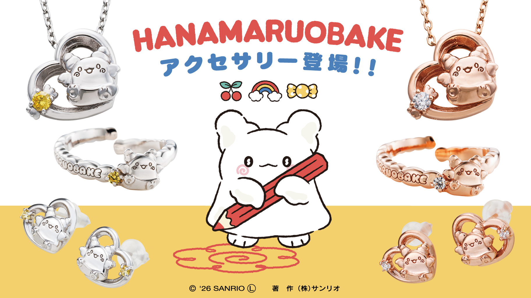 white cloverから、人気キャラクター「はなまるおばけ」のアクセサリーが新登場しました。ネックレス、リング、ピアスがシルバーとピンクゴールドの2色展開で、価格は各12,100円(税込)から。現在、white clover公式通販サイトで予約を受け付けており、お届けはご注文から約1か月後です。商品の詳細や購入方法を詳しく紹介しますのでぜひ参考にしてください。