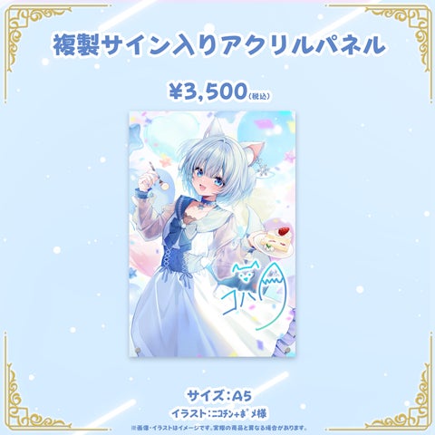 A5サイズのアクリルパネルには複製サインが入っており、お部屋に飾ることでいつでも雪月花コハクさんの存在を感じられるでしょう。