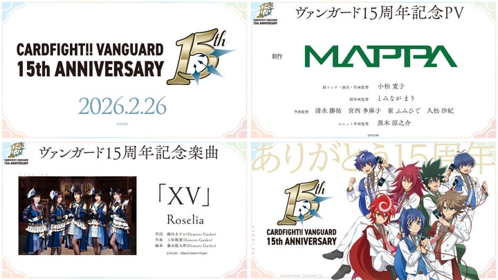 本日2026年1月12日、『カードファイト!! ヴァンガード』は15周年を迎え、今後の展開を発表する「ブシロード新春大発表会2026」を開催しました。MAPPA制作の記念PVや新商品、人気タイトルとのコラボレーション情報が公開されています。