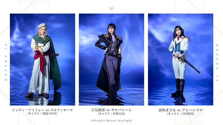 サルバトーレ役の佐藤日向さん、アレハンドロ役の岩田陽葵さん、ズルフィカール役の飛龍つかささんの全身ビジュアルが公開されました。