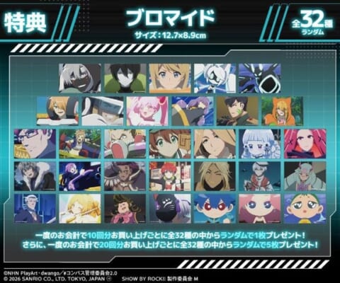 特典ブロマイド(全32種)の中からランダムで1枚プレゼント |