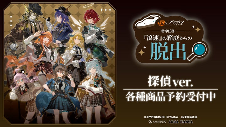 『アークナイツ』と「推し旅/JR東海」のコラボレーションアイテムが、通販サイト「AMNIBUS」にて受注を開始しています。探偵ver.の描き起こしイラストを使用した新作グッズをはじめ、多様なアイテムが登場しました。