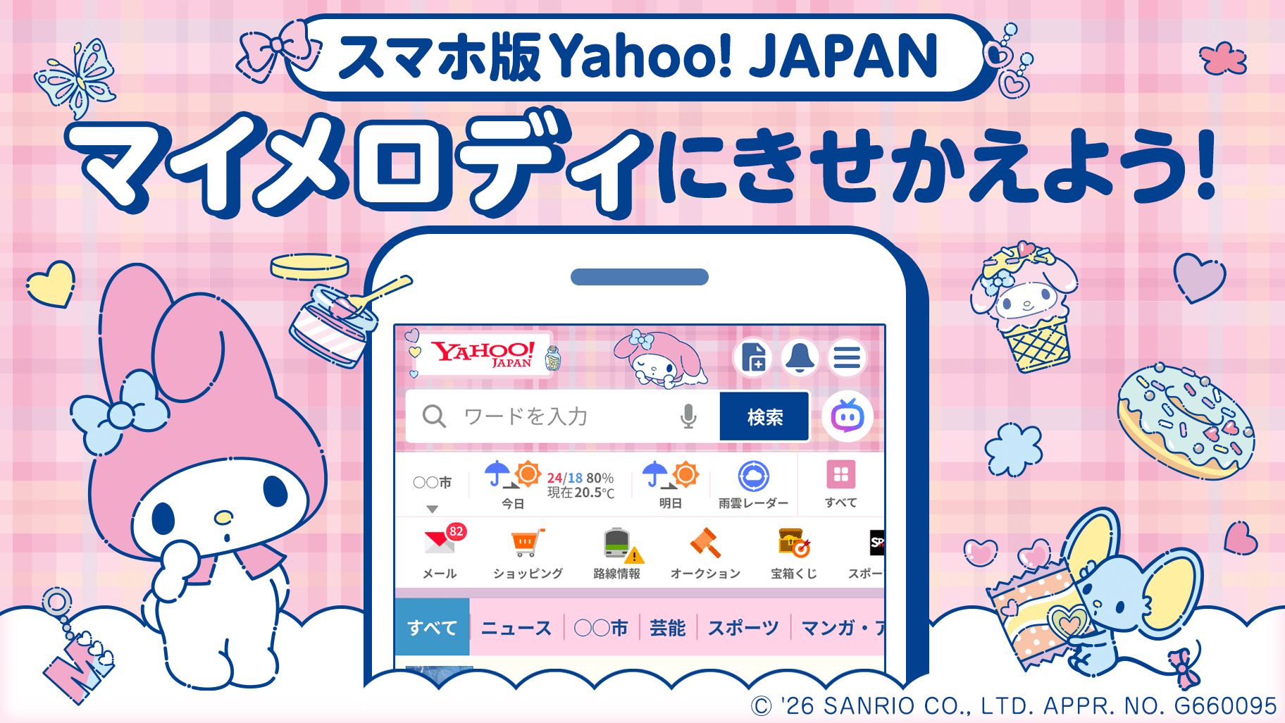 スマホ版Yahoo!JAPANにマイメロディきせかえデザインが登場!