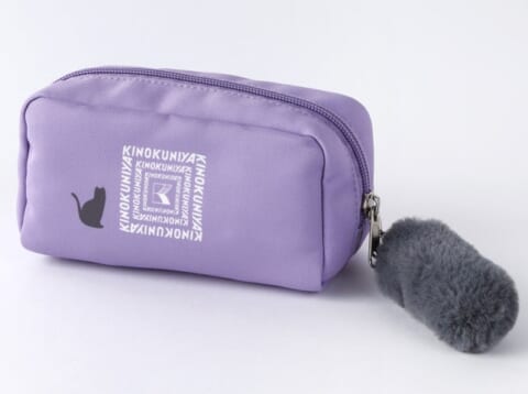 モフモフのしっぽ付きジッパーが特徴の「ねこのスイーツポーチ」は、黒猫、トラネコ、ハチワレをデザインした3色展開です。小物の整理に便利なサイズで、裏面には紀ノ国屋のロゴと猫のシルエットがカラーごとに異なるポーズで描かれています。