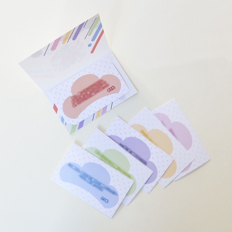専用のオリジナルBOXと、キャラクターからの書き下ろしメッセージ入りカードがセットになっています。 |