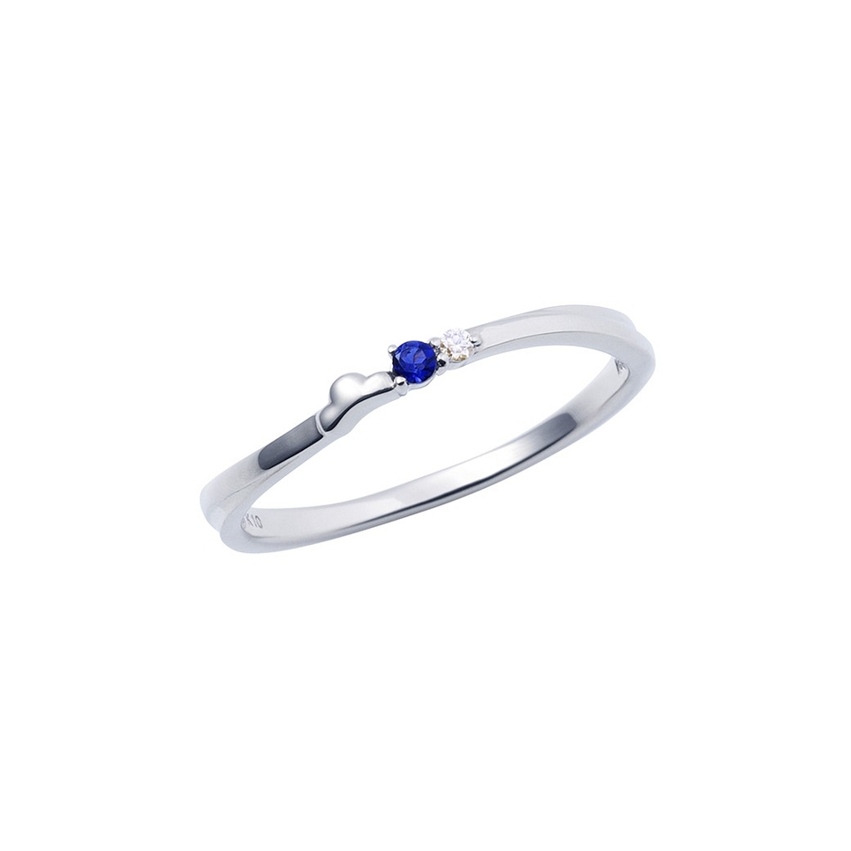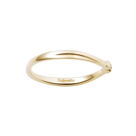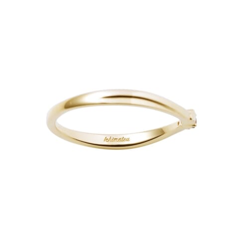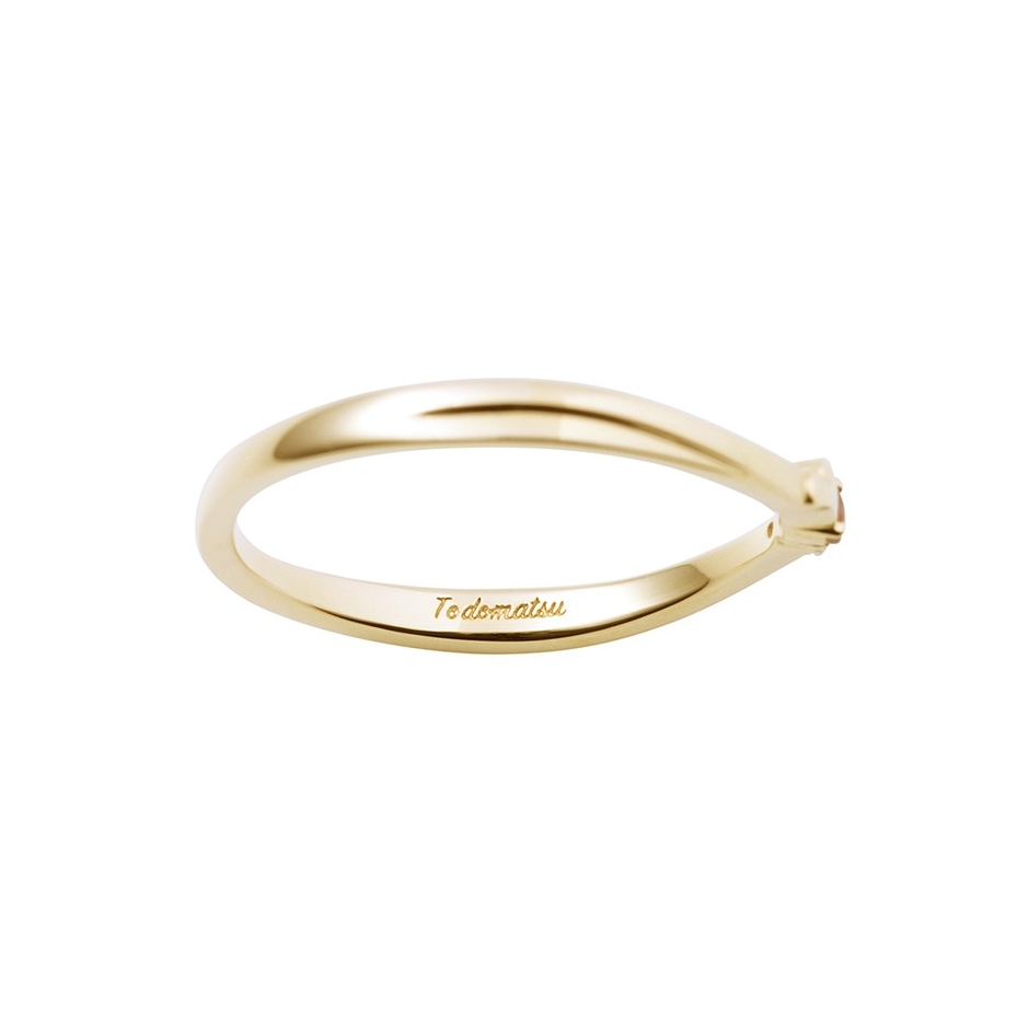 細身のウェーブタイプに松モチーフ、イメージカラーの天然石&モアサナイトをセット。内側には名前の刻印入り。 |