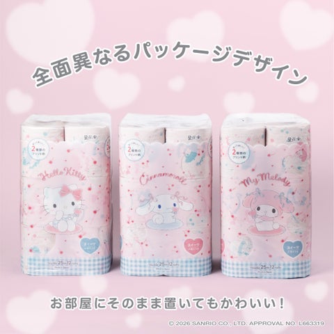 丸富製紙株式会社は、「サンリオキャラクターズ 春 12ロールダブル」を2026年1月15日(木)よりリニューアル発売します。これまでハローキティデザインで親しまれてきたトイレットペーパーが、サンリオキャラクターズデザインとして装いを新たにしました。
