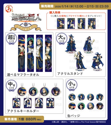TVアニメ『進撃の巨人』の新規描き下ろしグッズが当たるオンラインくじ「まるくじ」の販売が2026年1月14日より開始されました。テーマは「星空の魔法使い」です。