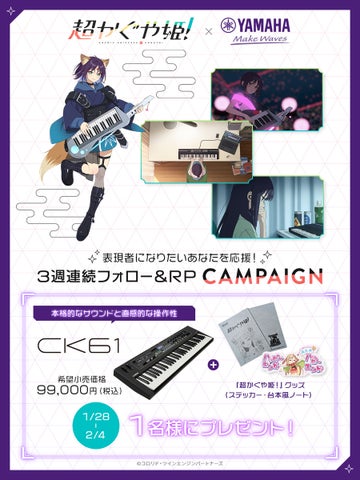 • 参加方法: 「超かぐや姫!」公式アカウント(@Cho_KaguyaHime)とヤマハシンセサイザー公式アカウント(@yamahasynth_jp)をフォローし、1月28日(水)発信のキャンペーンポストをリポストします。
