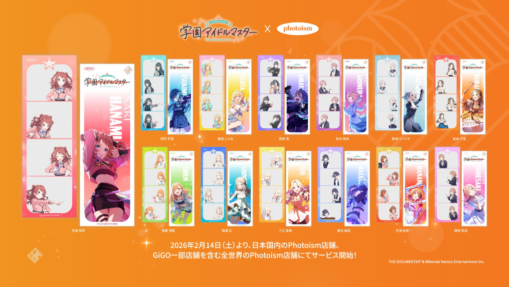 『学園アイドルマスター』とGiGOグループのお店が再びコラボレーション。『学園アイドルマスター×GiGOキャンペーン2026』を2026年2月14日より順次開催します。限定景品やPhotoismコラボなど、多数の企画を実施します。