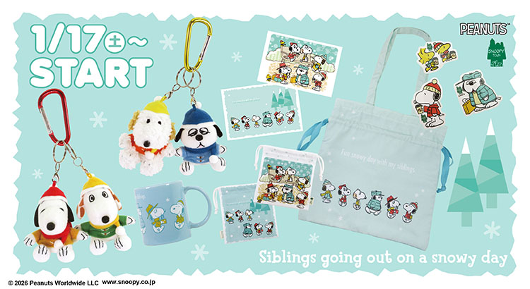 スヌーピータウンショップにて「ブラザーフェア2026 snowy day」が2026年1月17日より開催されます。雪の日デザインの限定アイテムが登場し、ノベルティプレゼントも実施される予定です。