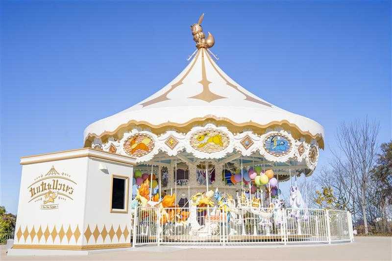 『ポケパーク カントー』のカヤツリタウンエリアに位置するアトラクション「ブイブイヴォヤージュ」の側面に、京王グループコーポレートロゴマークを掲出します。このアトラクションは、イーブイたちが登場するメリーゴーランドで、幻想的な世界一周の旅を楽しめます。