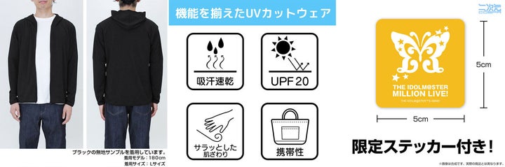 「★限定★アイドルマスター ミリオンライブ! 薄手ドライパーカー Ver.2.0(限定ステッカー付)」は、価格6,600円(税込)で提供されます。サイズはM、L、XL、XXLがあり、カラーはGRAYです。この商品は流通限定品として位置づけられ、事前二次通販では限定ステッカーが付いたセットとして購入できます。