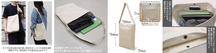 耐久性の高い厚手のキャンバス生地を使用しており、長めのベルトで斜めがけにも対応します。開口部にはスナップボタン、内部にはパスケースや携帯電話を入れられる便利な内ポケットも装備。サブバッグとして、イベントやお買い物に活用できるでしょう。事前二次通販で販売されており、コスパオンラインショップでの予約受付は未定です。