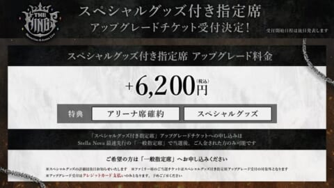 「スペシャルグッズ付き指定席」へのアップグレードチケット受付も決定しています。これは、Stella Nova最速先行受付で「一般指定席」チケットを当選し、ご入金された方を対象に、後日「スペシャルグッズ付き指定席」へのお申込みを受け付け、抽選する方法です。