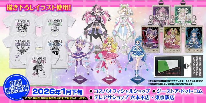 『キミとアイドルプリキュア♪』の新グッズは、2026年1月下旬に発売予定です。初回販売はコスパオフィシャルショップ、ジーストア・ドット・コム、テレアサショップ 東京駅店、テレアサショップ 六本木店で実施されます。オンラインでの予約購入を希望する場合は、2026年1月19日(月)正午12:00よりコスパ オンラインショップで予約受付が開始されます。キュアアイドルたちの魅力が詰まったアイテムをぜひ手に入れてください。