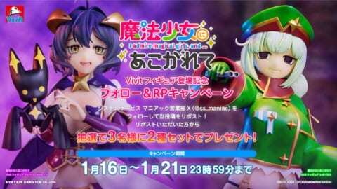 抽選で3名様に、1月登場のTVアニメ「魔法少女にあこがれて」 Vivitフィギュア マジアベーゼ Ver.1.5とレオパルトのセットをプレゼントします。