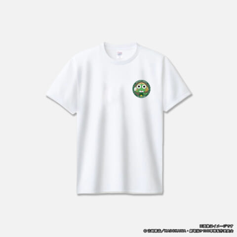 左胸にワンポイントでケロロの描き下ろしイラストを配置。日常使いしやすいデザイン。