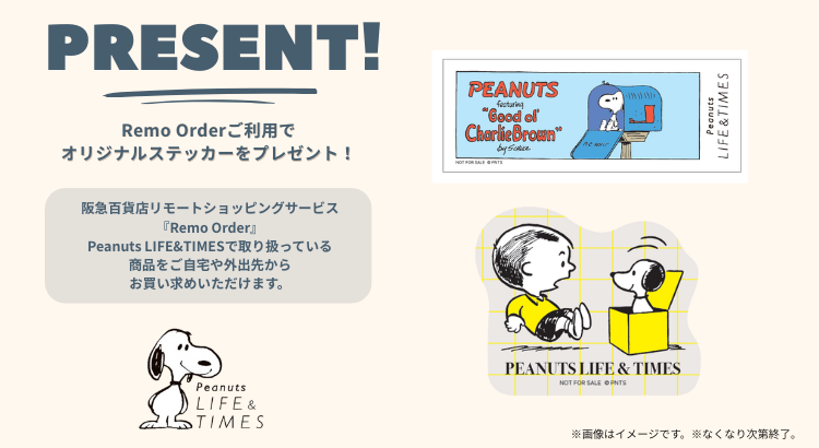 Peanuts LIFE&TIMES 各店(神戸阪急店、西宮阪急店)のリモオーダーで商品を1点以上ご注文したお客様 |