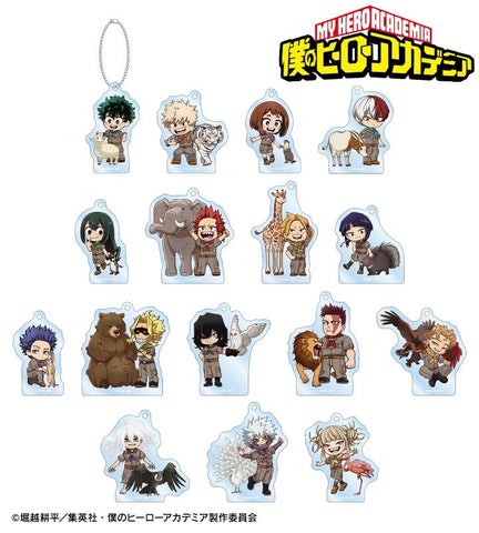 全16種 (緑谷出久、爆豪勝己、麗日お茶子、轟焦凍、蛙吹梅雨、切島鋭児郎、上鳴電気、耳郎響香、心操人使、オールマイト、相澤消太、エンデヴァー、ホークス、死柄木弔、荼毘、トガヒミコ) |