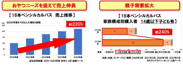 「18本 ペンシルカルパス」は、2016年の発売以来、多くの消費者に親しまれてきました。本コラボ商品も、子どもも大人もおいしく食べられる、クセのないまろやかな味わいに仕上げています。お酒のおつまみとしてはもちろん、お子様のおやつとしても最適なため、家族みんなで楽しめます。
