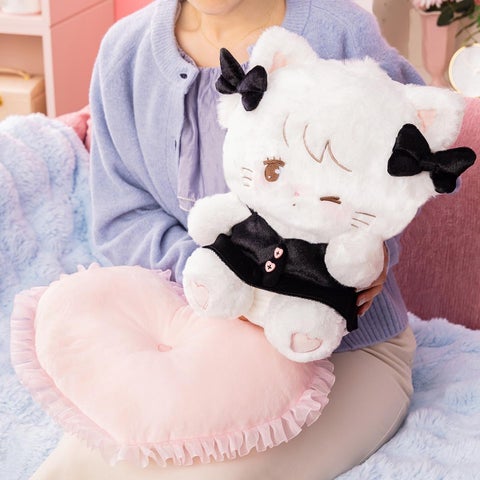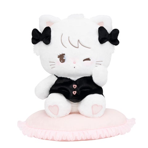 お部屋の主役となるムースのBIGなぬいぐるみです。ハートのクッションが付属し、ふわふわで極上の抱き心地を提供します。きゅるんっとしたウインクが、おうち時間に癒しをもたらします。